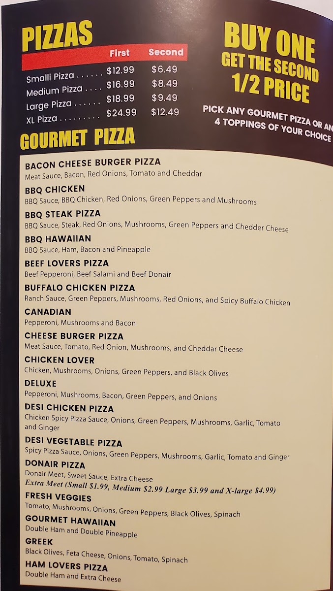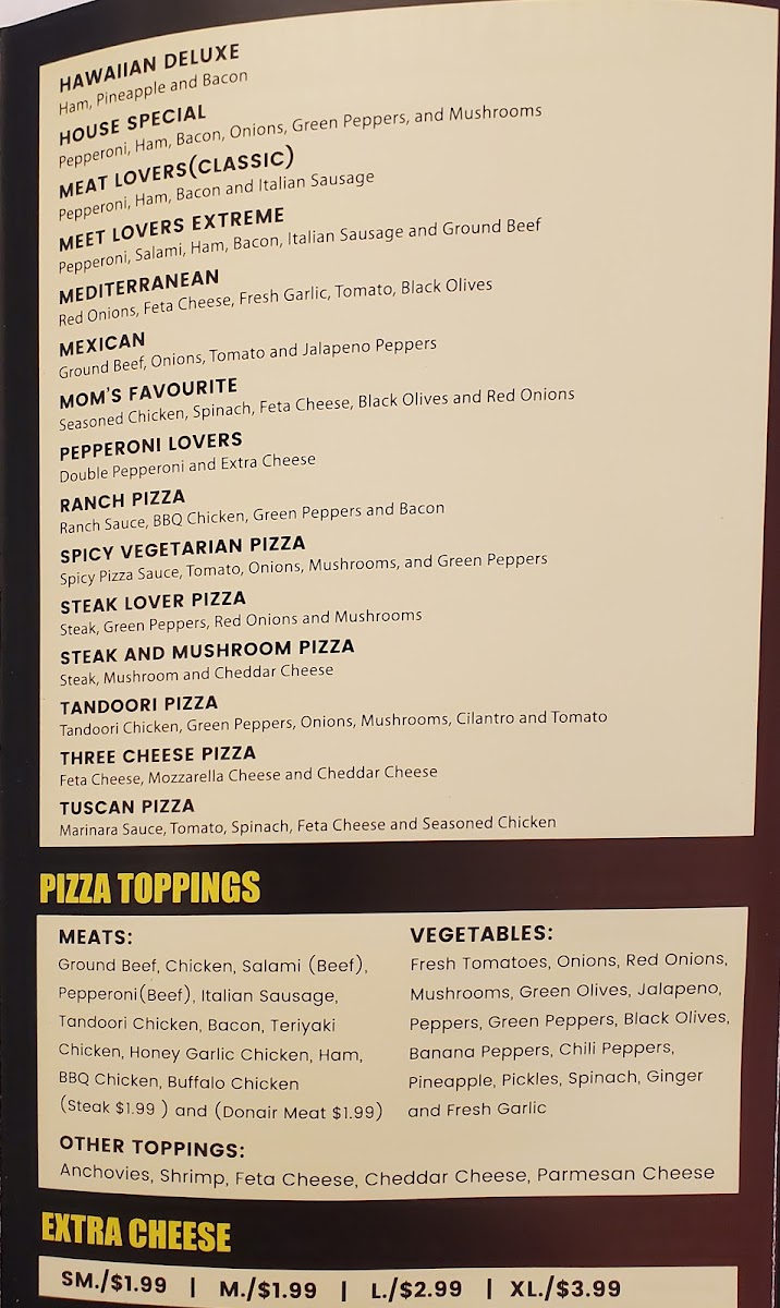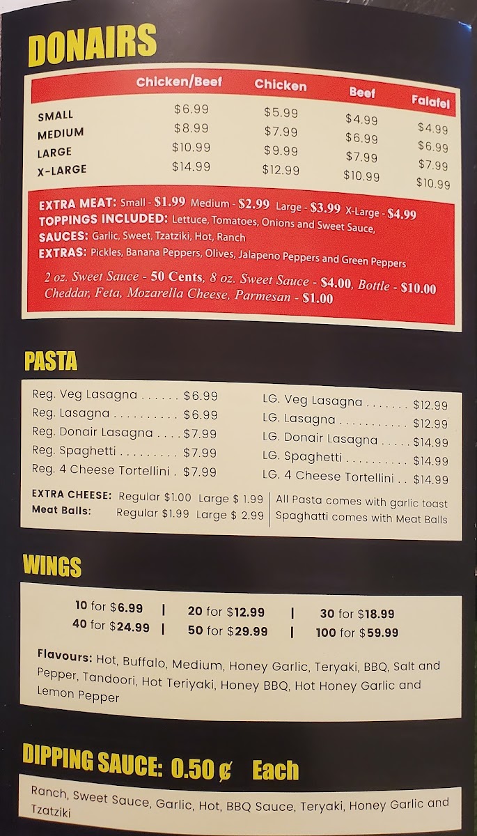wasim's donair & Pizza Menu